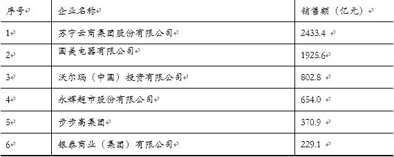 2017年,零售百强中销售规模过千亿的超大型零售企业为6家,过百亿的企业68家。