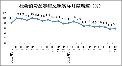 从实际增速来看,1-11月份累计增长7%,增速较1-10月份放缓0.2个百分点。其中11月份同比增长5.8%,增速较上月回升0.2个百分点。