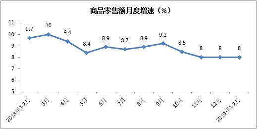 1-2月份商品零售额实现58813亿元,较上年增长8.0%,增速与上年12月份持平。