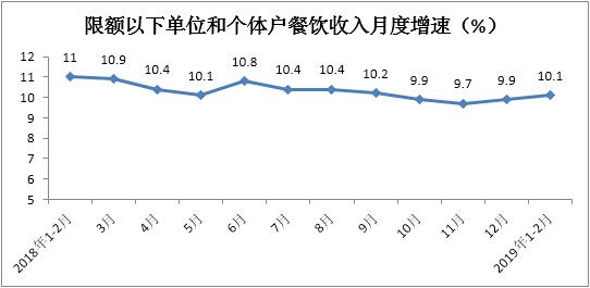 1-2月份餐饮收入实现7251亿元,较上年增长9.7%,较上年12月份加快0.7个百分点。