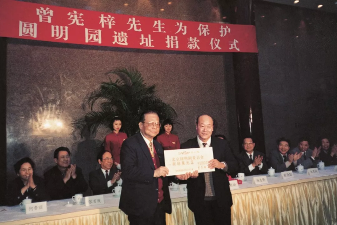 2019年5月24日,为纪念曾宪梓博士为圆明园围墙复建工程捐资二十五周年,大力弘扬曾宪梓博士的爱国义举,圆明园特为曾宪梓博士制作半身铜像,并于圆明园三园交界处隆重举办雕像揭幕仪式。国务院港澳办、国家体育总局、北京市海淀区人民政府等领导出席揭幕仪式。