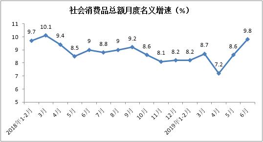 上半年商品零售额实现173930亿元,累计增长8.3%,增速较1-5月份加快0.3个百分点。其中,6月份同比增长9.9%,增速环比提升1.4个百分点,是近15个月以来最高增速。