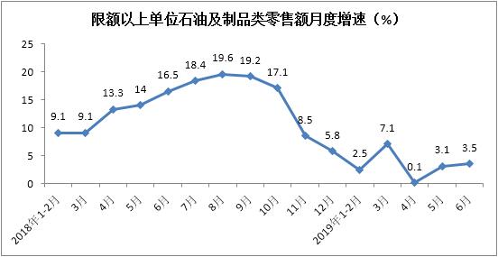 上半年限额以上单位石油及制品类零售额实现9690亿元,累计增长3.1%,增速与1-5月份持平。其中,6月份石油及制品零售额同比增长3.5%,增速环比提升0.4个百分点。