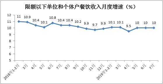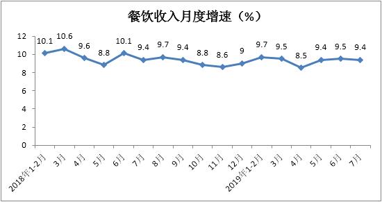 1-7月份餐饮收入实现24937亿元,累计增长9.4%,增速与1-6月份持平。其中,7月份同比增长9.4%,增速较上月放缓0.1个百分点。