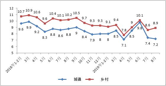 1-8月份城镇消费品零售额实现224412亿元,累计增长8.1%,增速较1-7月份放缓0.1个百分点。乡村消费品零售额实现37768亿元,累计增长9.0%,增速较1-7月份持平。其中,8月份城镇消费品市场增长7.2%,增速较上月放缓0.2个百分点,乡村消费品市场增长8.9%,增速较上月加快0.3个百分点。