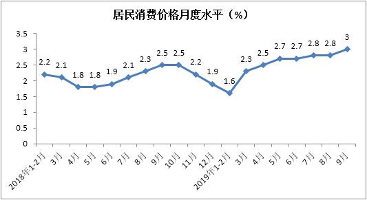 9月份居民消费价格同比上涨3%,涨幅较上月提高0.2个百分点。