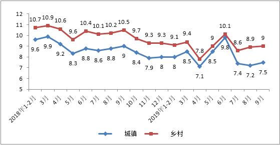 1-9月份城镇消费品零售额实现253524亿元,累计增长8%,增速较1-8月份放缓0.1个百分点。乡村消费品零售额实现43150亿元,累计增长9.0%,增速较1-8月份持平。其中,9月份城镇消费品市场增长7.5%,增速较上月加快0.3个百分点,乡村消费品市场增长9%,增速较上月加快0.1个百分点。