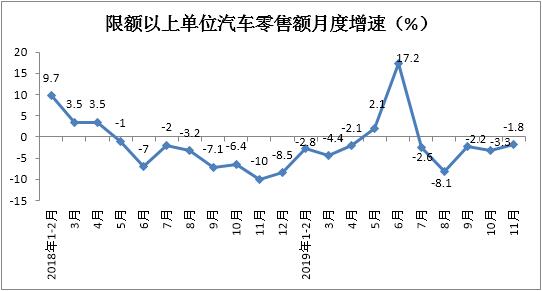 1-11月份限额以上单位汽车类零售额实现34922亿元,累计下降1.1%,降幅较1-10月份扩大0.1个百分点。其中,11月份同比下降1.8%,降幅较上月收窄1.5个百分点。