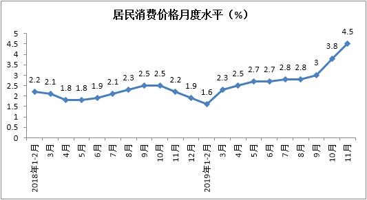 11月份居民消费价格同比上涨4.5%,涨幅较上月提高0.7个百分点。