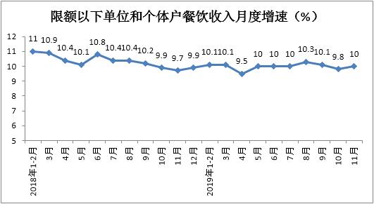 1-11月份餐饮收入实现41896亿元,累计增长9.4%,增速与1-10月份持平。其中,11月份同比增长9.7%,增速较上月加快0.7个百分点。