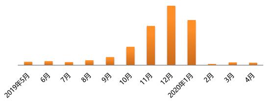 图1:2019年5月-2020年4月30家大型百货企业服装零售量