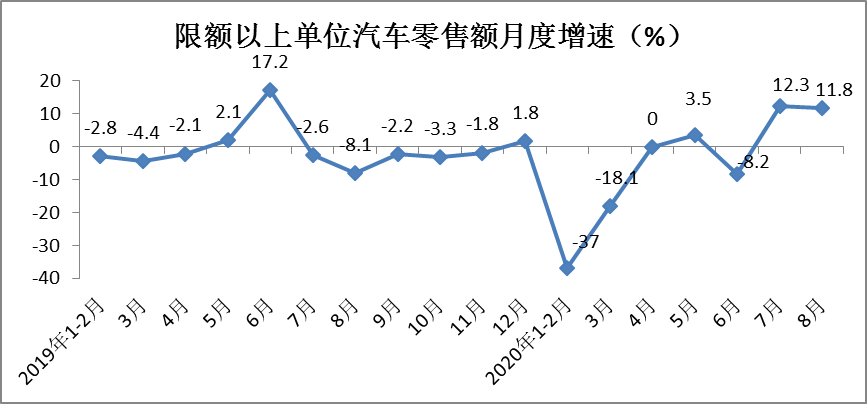 1-8月份,限额以上单位汽车类零售额实现22890亿元,同比下降8.8%,降幅较1-7月份收窄2.8个百分点。其中,8月份汽车类零售额同比增长高达11.8%,连续实现两位数增长。