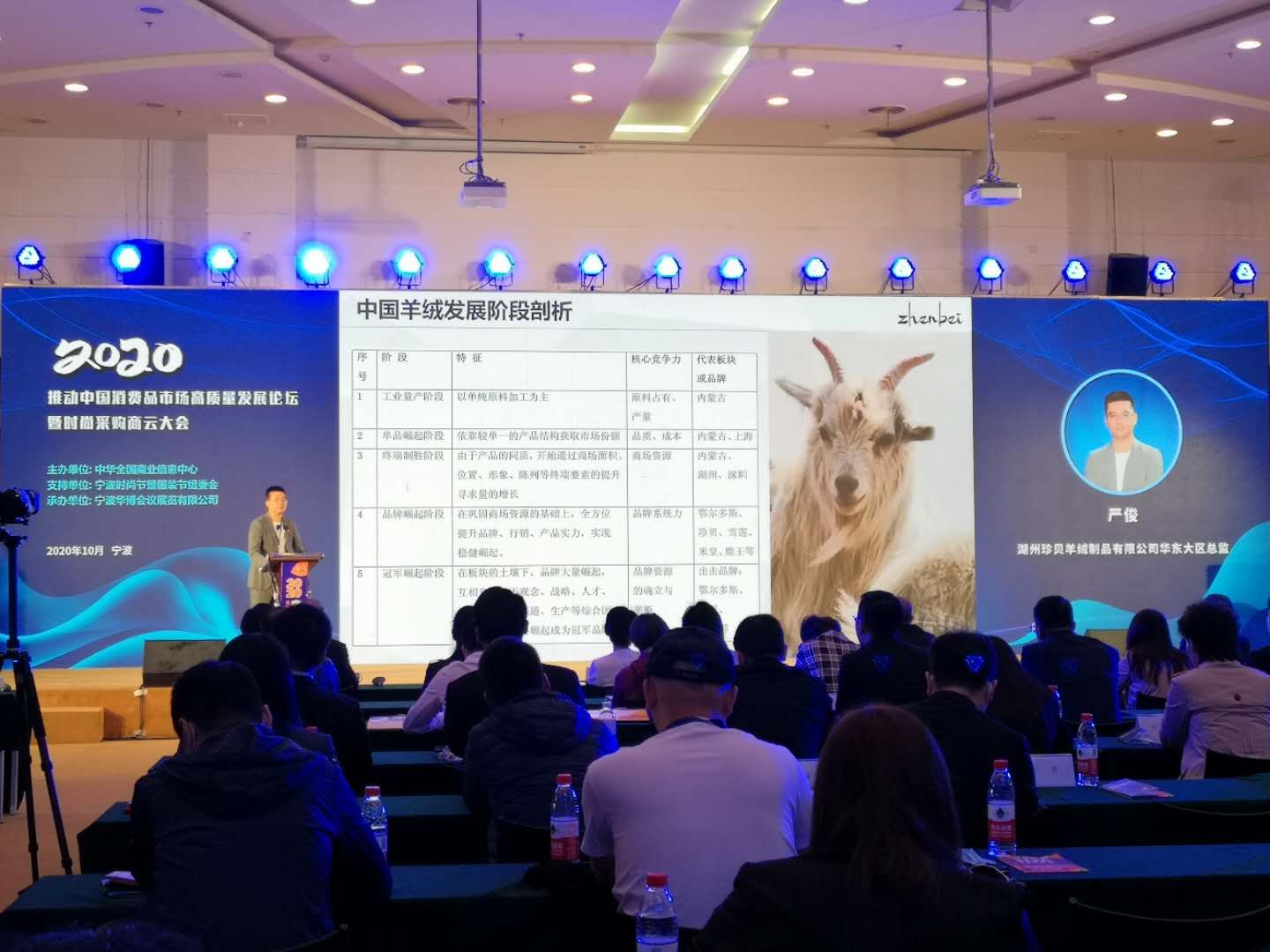 湖州珍贝羊绒制品有限公司华东大区总监严俊分享了羊绒行业概况和行业痛点,以及珍贝如何从自身发力进行企业转型从而促进高质量发展的经验。