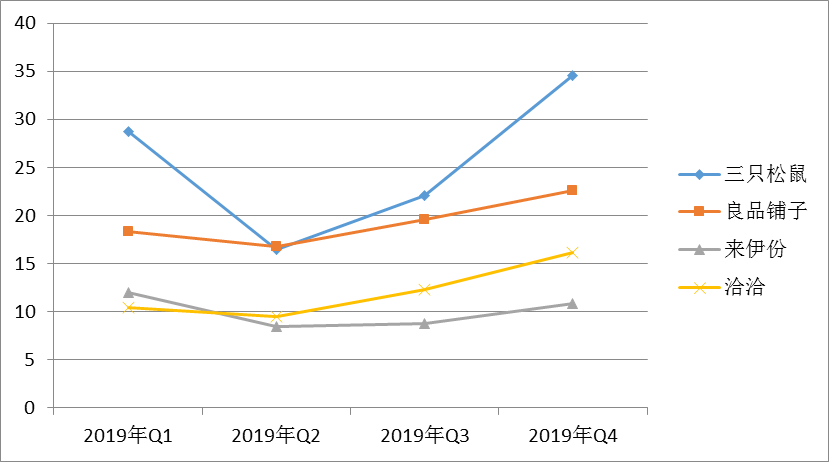 图表 1? 2019年重点上市零食品牌季度营收情况(亿元)