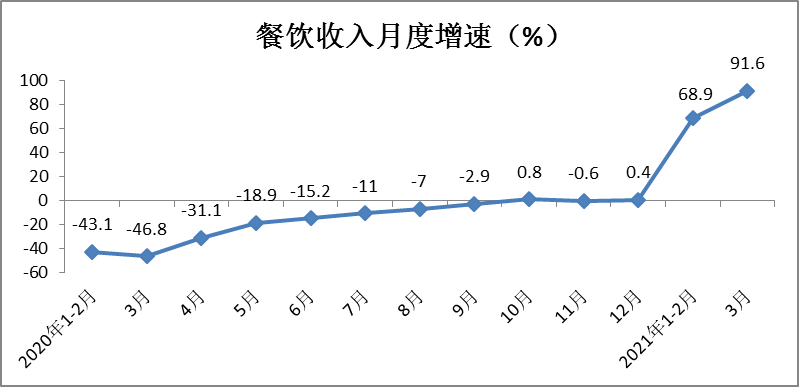 一季度餐饮收入10596亿元,同比增长75.8%,据测算,较2019年同期下降2%,两年平均下降1%。其中,限额以上单位餐饮收入2285亿元,同比增长77.7%。