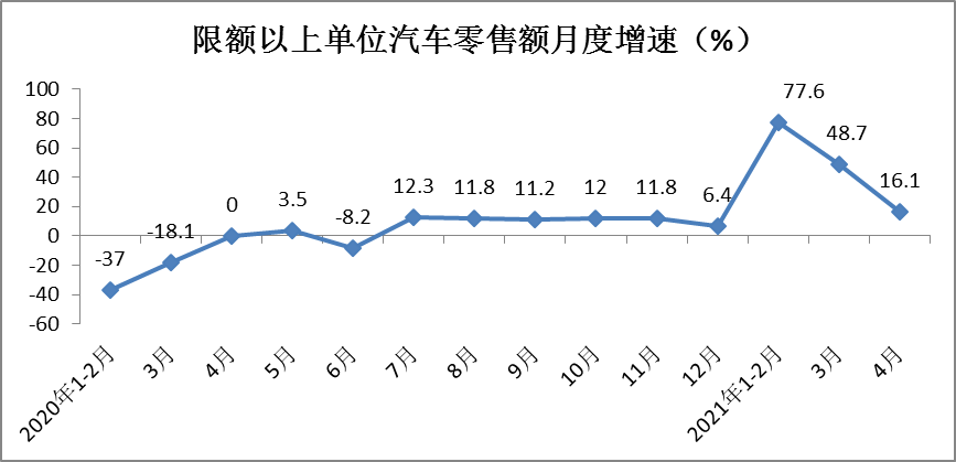 1-4月份限额以上单位汽车类零售额实现14311亿元,累计增长49.2%,增速较一季度放缓16.4个百分点。