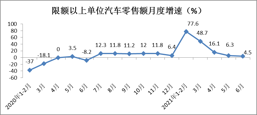 上半年限额以上单位汽车类零售额实现21907亿元,累计增长30.4%,增速较1-5月份放缓7.4个百分点。6月份,限额以上单位汽车类零售额同比增长4.5%,增速环比放缓1.8个百分点。
