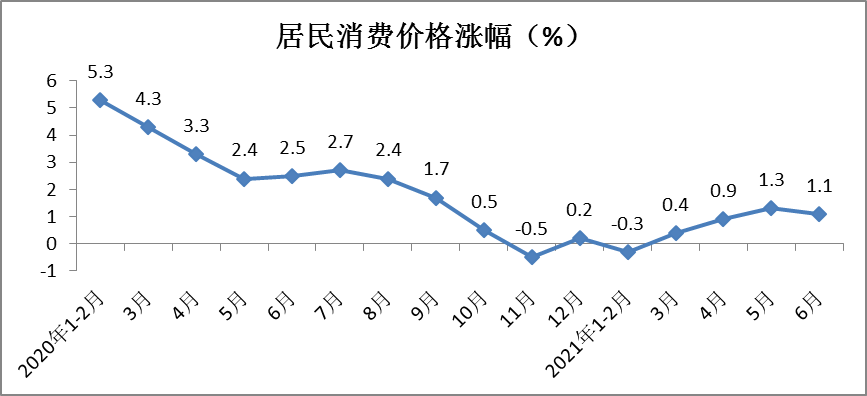 上半年全国居民消费价格累计上涨0.5%,涨幅较上年回落3.3个百分点,较1-5月份提高0.1个百分点。其中食品价格累计下降0.2%,增速较上年同期回落16.4个百分点,较1-5月份下降0.3个百分点;非食品价格累计上涨0.7%,涨幅与上年同期持平,较1-5月份提高0.2个百分点。消费品价格累计上涨0.7%,涨幅较上年同期回落4.9个百分点,较1-5月份提高0.1个百分点;服务价格累计增长0.3%,涨幅较上年同期回落0.7个百分点,较1-5月份提高0.1个百分点。