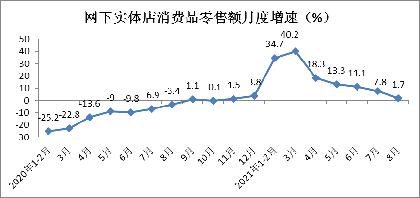 根据测算,1-8月份实体店消费品零售额214884亿元,同比增长18.8%,增速较1-7月份放缓2.9个百分点。8月份实体店消费品零售额26185亿元,同比增长1.7%,增速环比放缓6.1个百分点。