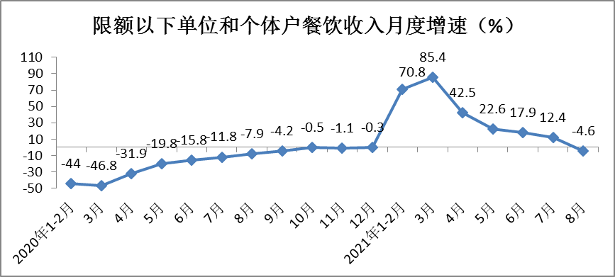 7、前8月限额以下商品零售额同比增长14.9%,餐饮收入同比增长32.8%
