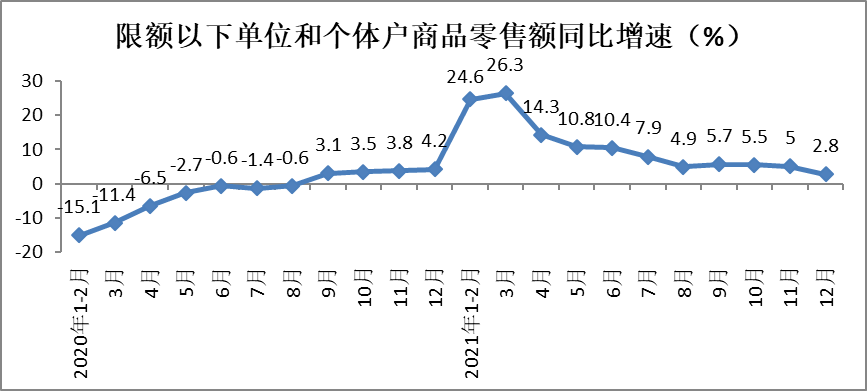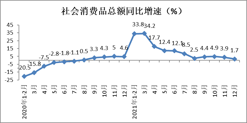 1、2021年社会消费品零售总额同比增长12.5%