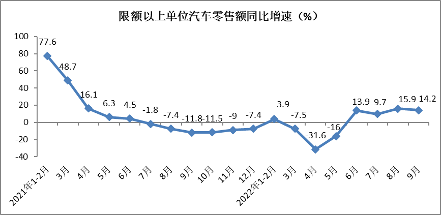 9月份限额以上单位汽车类零售额同比增长14.2%,增速较8月份回落1.7个百分点。前三季度,限额以上单位汽车类零售额实现33174亿元,同比增长0.4%,增速较1-8月份提高1.7个百分点。