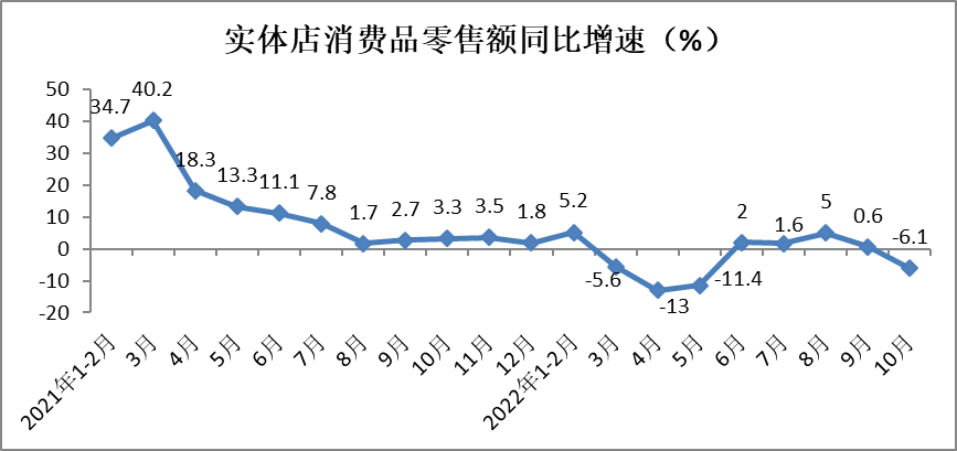 根据乐鱼电竞的数据,2022年10月份全国百家重点大型零售企业零售额同比下降13.6%,降幅相比上月扩大9.5个百分点。
