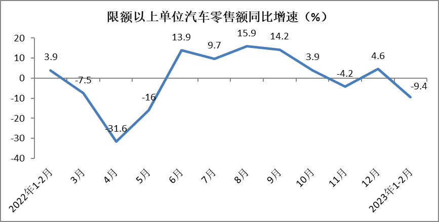 1-2月份限额以上单位汽车类零售额实现6658亿元,同比下降9.4%,增速较去年12月份大幅回落14个百分点。