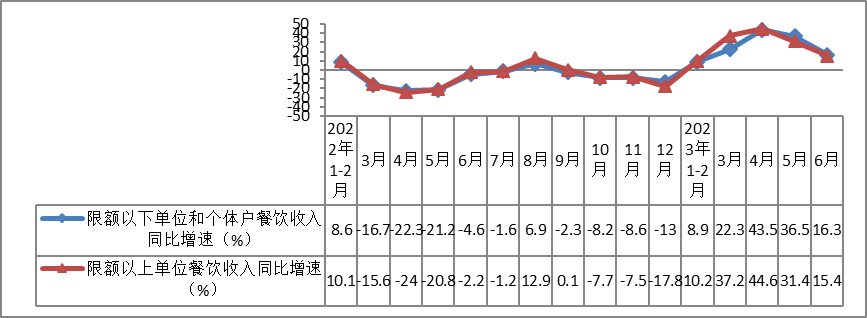 经测算,上半年,限额以下单位和个体户餐饮收入实现18099亿元,同比增长20.7%,增速较一季度加快8.2个百分点。其中,6月份限额以下单位和个体户餐饮收入同比增长16.3%,增速较5月份放缓20.2个百分点,快于限额以上单位餐饮收入增速0.9个百分点。