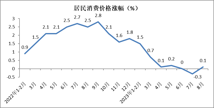 1-8月份,全国居民消费价格同比上涨0.5%,涨幅与1-7月份持平。其中,食品类消费价格同比上涨1.4%,涨幅较1-7月份收窄0.5个百分点。服务类消费价格同比上涨1%,涨幅较1-7月份提高0.1个百分点。