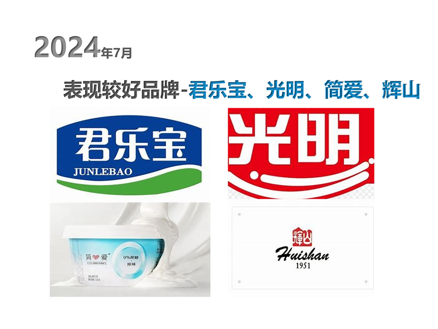 前十位品牌包括伊利、蒙牛、光明、君乐宝、简爱、三元、养乐多、辉山、旺仔和新希望,前十位品牌市场综合占有率合计为58.08%,较去年同期提高了0.14个百分点,与上月相比增长了0.53个百分点。