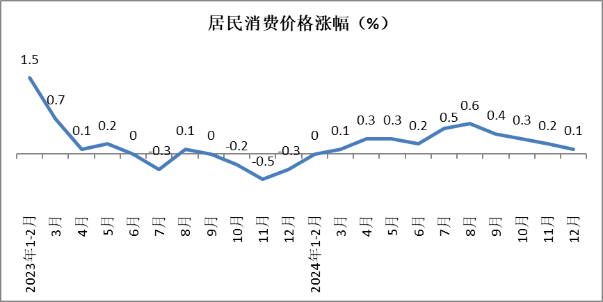2024年全年,全国居民消费价格比上年上涨0.2%。其中,食品价格下降0.6%,非食品价格上涨0.4%;消费品价格下降0.1%,服务价格上涨0.7%。服务价格涨幅大于消费品0.8个百分点。