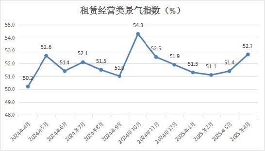从行业分类看,4月零售业三大分类指数趋势向好。商品经营类指数为50.1%,较上月微升0.2个百分点;租赁经营类指数为52.7%,较上月上升1.3个百分点;电商经营类指数为50.1%,与上月持平。