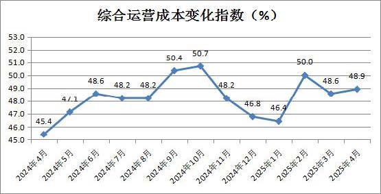 综合运营成本反向指数为48.9%,较上月微升0.3个百分点,表明租赁经营类企业运营成本压力有所降低。