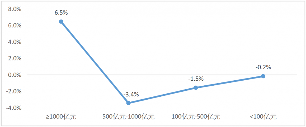 图表1:2024年按销售规模划分各类商业零售TOP100企业销售额增速(%)