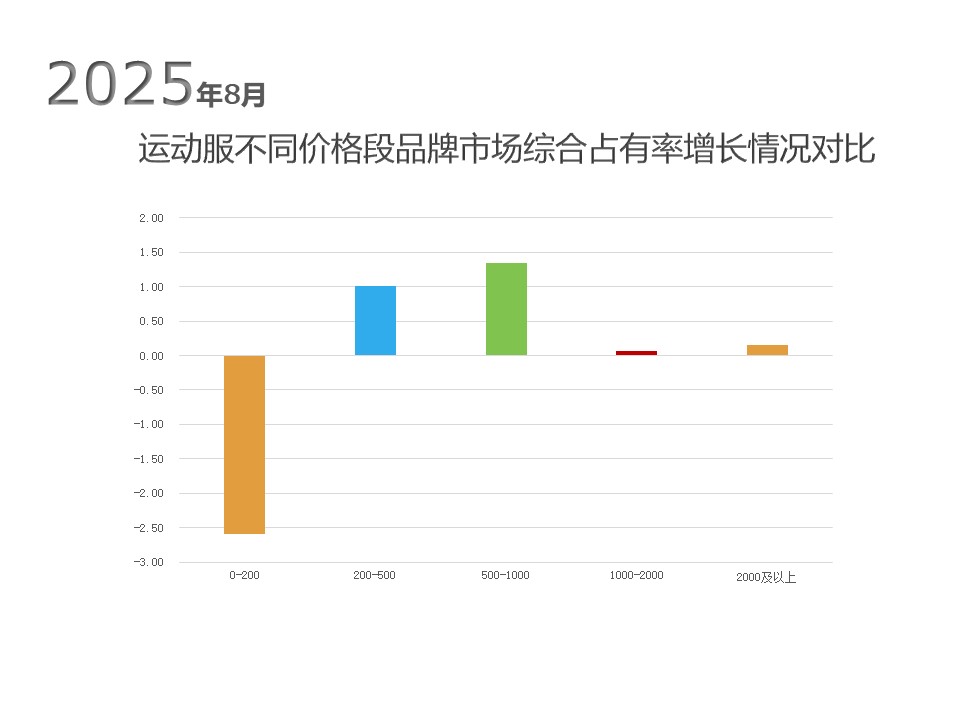 当前,运动服市场呈现出积极态势。运动服市场的消费者需求不再局限于基础的运动装备,而是追求那些技术过硬、设计出众,并能代表自己生活态度的产品。运动服产品价值呈现技术复合趋势,防水透气面料、碳板等专业科技与设计美学并重。同时,消费者愿意为能融入多种生活场景的通勤跑鞋、办公室瑜伽服等场景化特色产品支付溢价。2025年8月前十品牌中,adidas和迪桑特表现较好,市场综合占有率与上年同期相比分别提高了1.62和0.99个百分点。