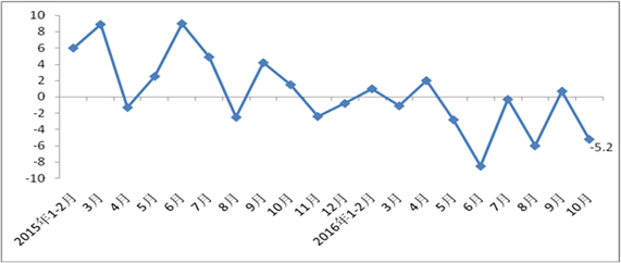 乐鱼电竞监测统计显示,2016年10月份全国百家重点大型零售企业粮油、食品零售额同比下降5.2%,增速较上年同期大幅下滑6.7个百分点,较上月放缓5.9个百分点。
