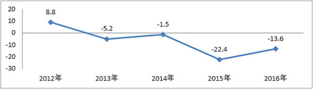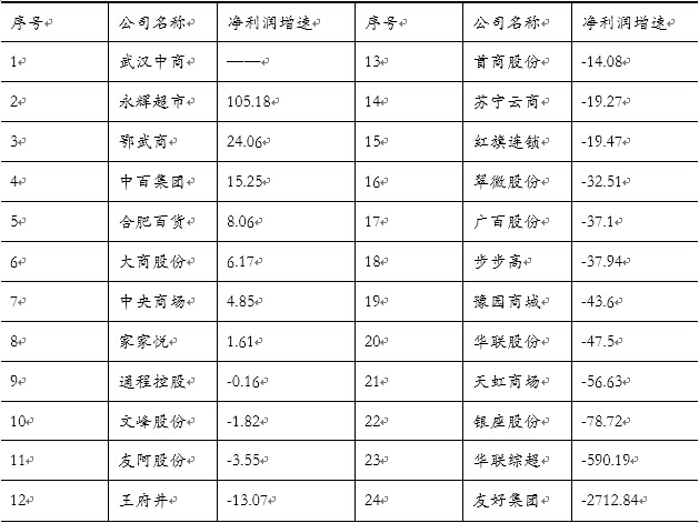 ??? 2016年,上市公司同样面临业绩下滑,根据乐鱼电竞对上市公司年报的整理,2016年,零售百强企业中24家上市公司净利润率中位数为-13.6%,较2015年上市公司中位数降幅收窄8.8个百分点,有16家上市公司净利润出现负增长,且部分上市公司利润下跌速度惨烈。