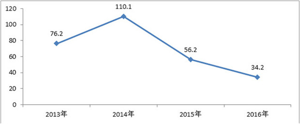 ??? 百强中电商销售增速同样也呈下降趋势,2016年进入零售百强的电商销售规模同比增长34.2%,这一增速低于2015年同期22.0个百分点,大幅低于2014年同期75.9个百分点。表明随着网购基数的扩大,网上销售增速明显回落。