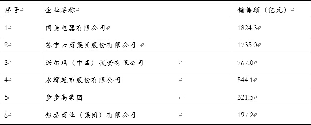 ??? 2016年,零售百强中销售规模过千亿的超大型零售企业为6家,过百亿的企业64家。